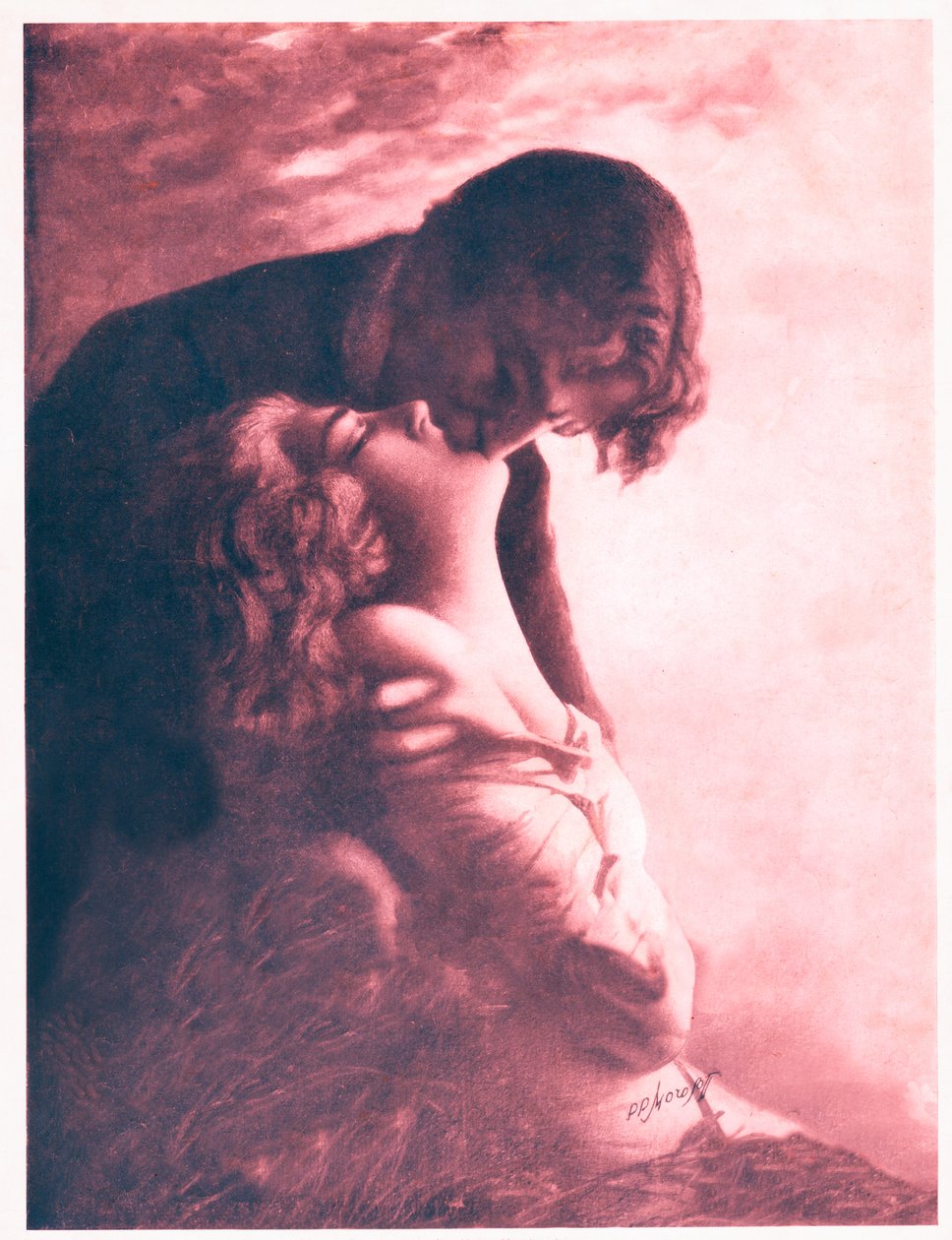 Pari suutelee. noin 1920 (kuva)(Couple kissing. circa 1920 (illustration)). . |