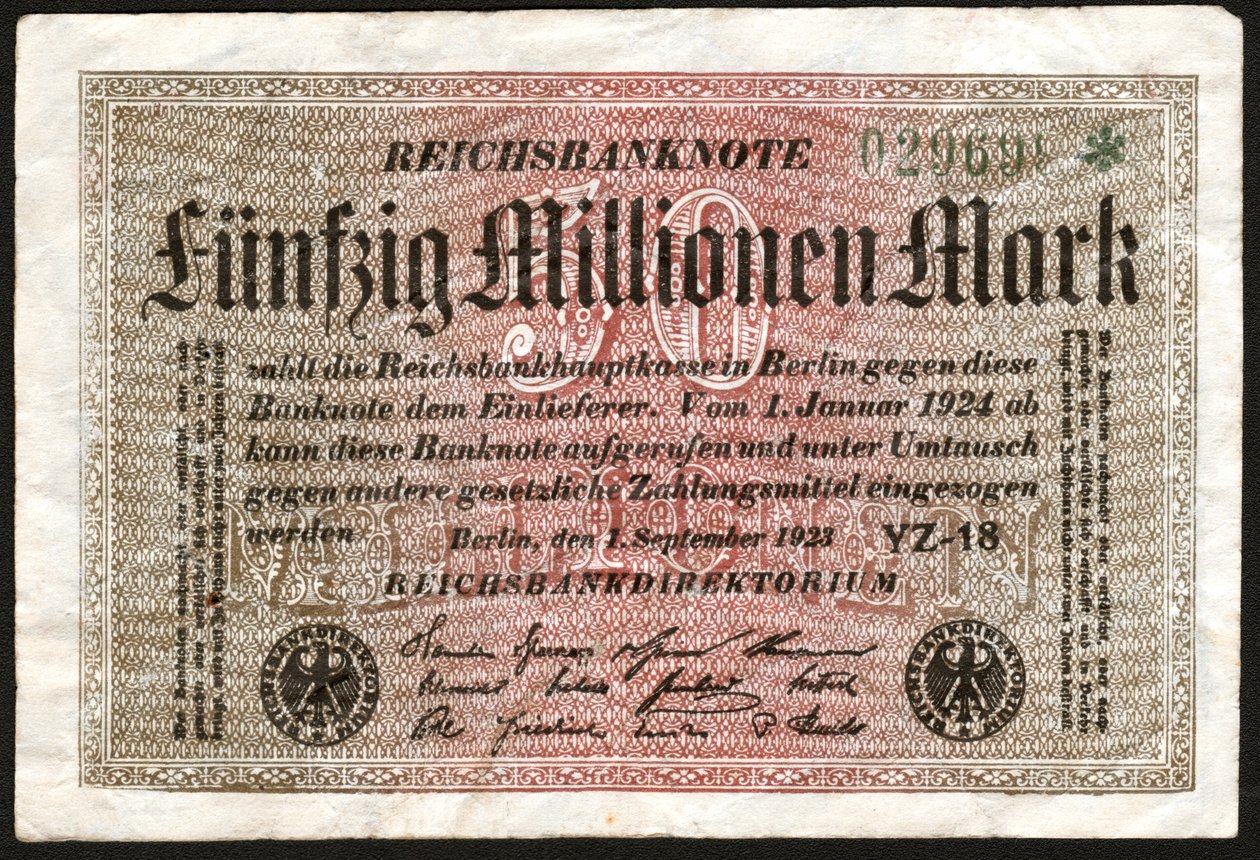 50 miljoonan markan seteli, Saksa(50 Million Mark banknote, Germany). . |