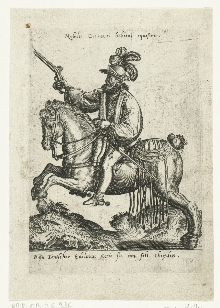 Saksalainen ratsumies aseen kanssa(Duitse ruiter met pistool)Abraham de Bruyn (attributed to)(print maker),Caspar Rutz (possibly)(publisher) |