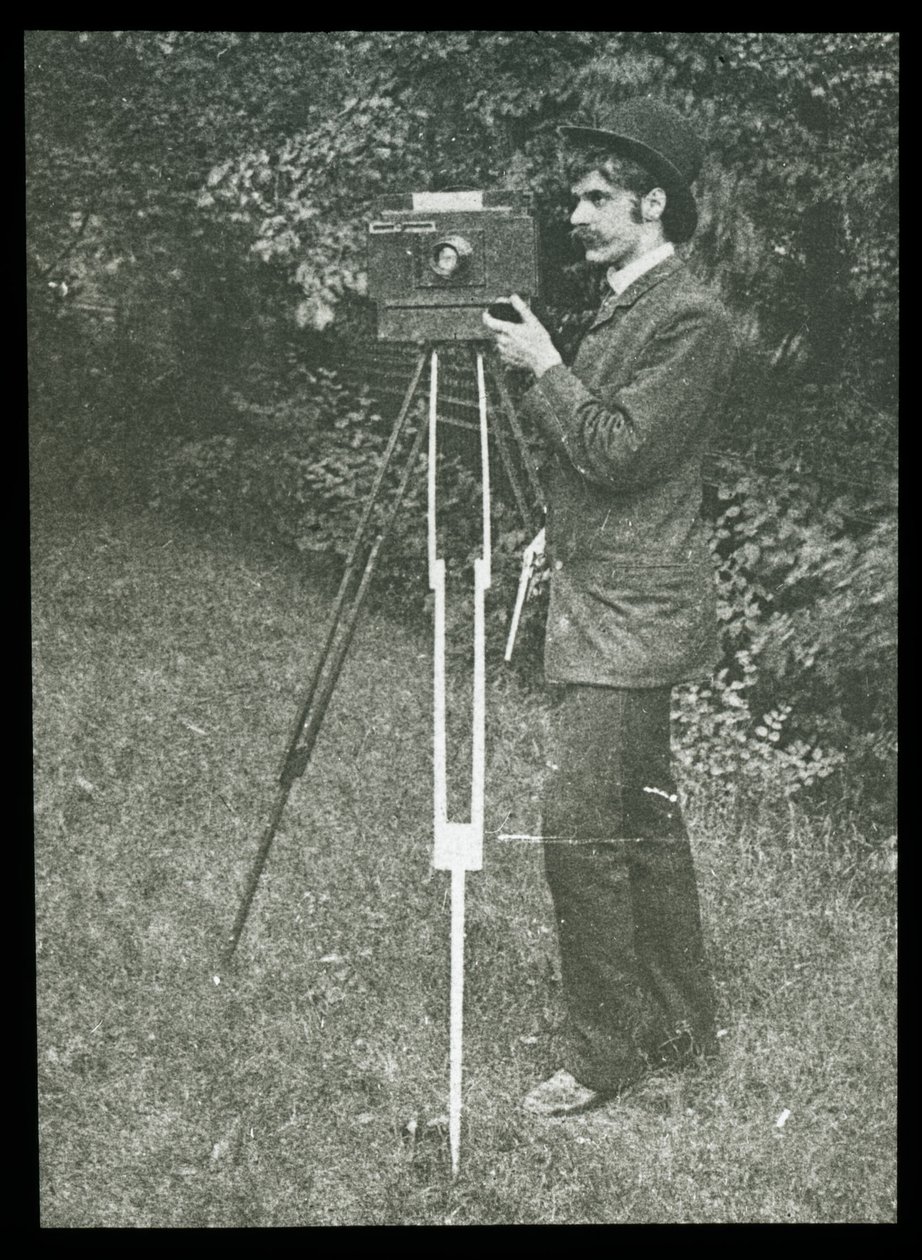 Omakuva kameralla, jalustalla ja pistoolilla(Self-Portrait with camera, tripod and pistol)Alfred Stieglitz |