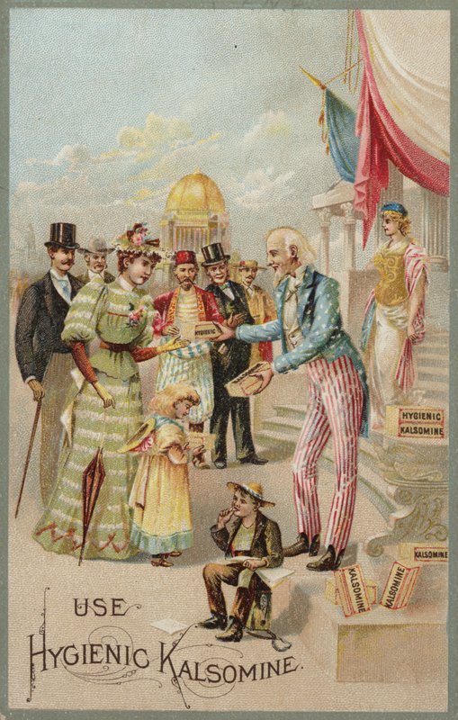 Setä Sam jakaa Kalsominea(Uncle Sam distributing Kalsomine )American School |