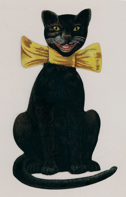Musta kissa yllään keltainen jousi(Black cat wearing a yellow bow )American School |