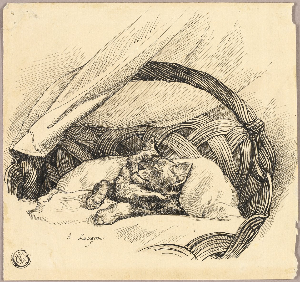 Kissa nukkuu korissa(Cat Asleep in Basket)Auguste Andre Lancon |