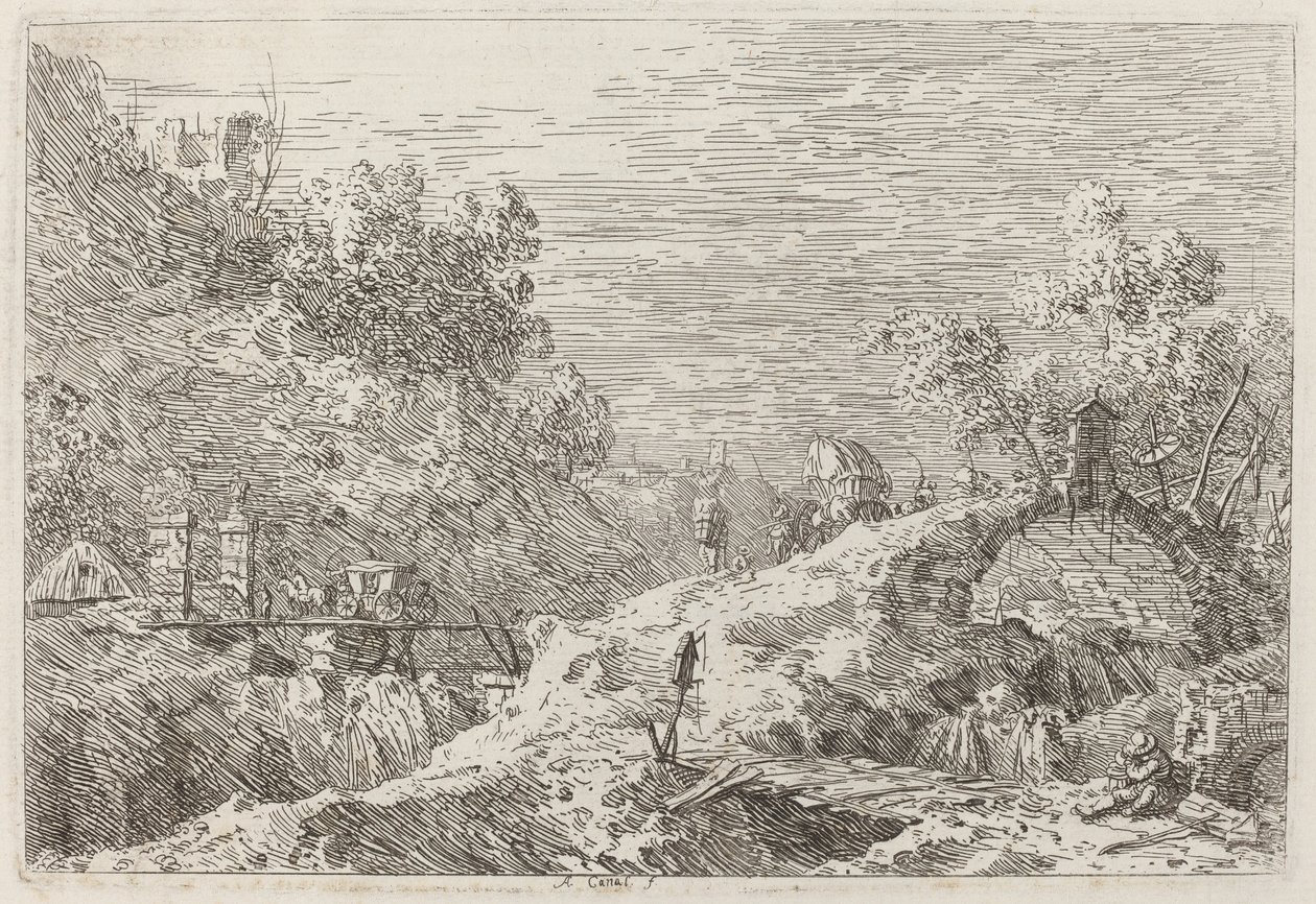 Vuoristomaisema ja viisi siltaa, c. 17351746.(Mountain Landscape with Five Bridges, c. 17351746. )Canaletto |