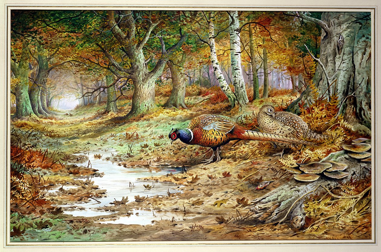Huonekalut ja erilaiset esineet 1100- ja 1300-luvuilta(Cock Pheasant and Sulphur Tuft Fungi, (wc))Carl Donner |