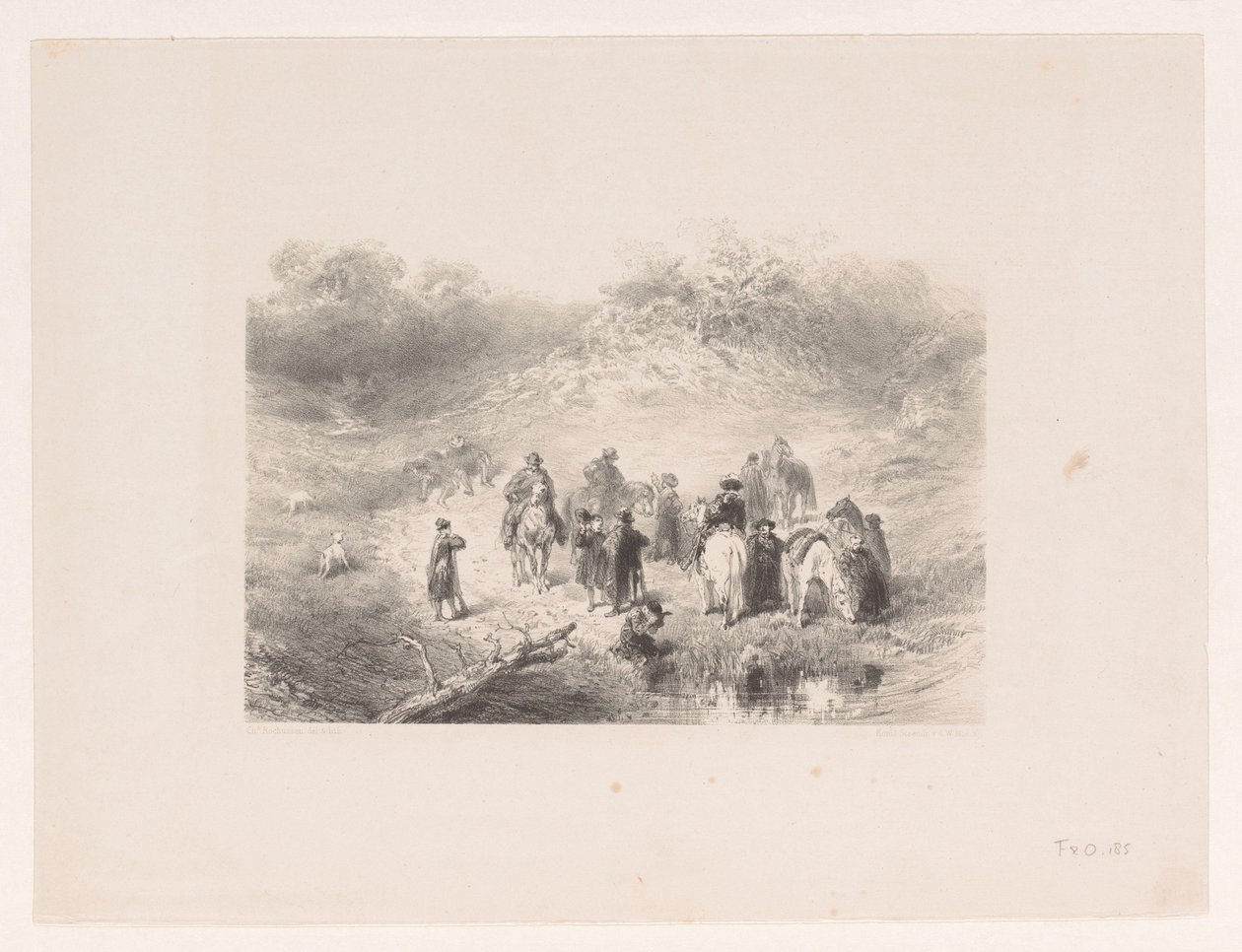 Ratsastajat dyynimaisemassa(Ruiters in duinlandschap)Charles Rochussen(print maker),Charles Rochussen(after own design by),Koninklijke Nederlandse Steendrukkerij van C.W. Mieling(printer) |