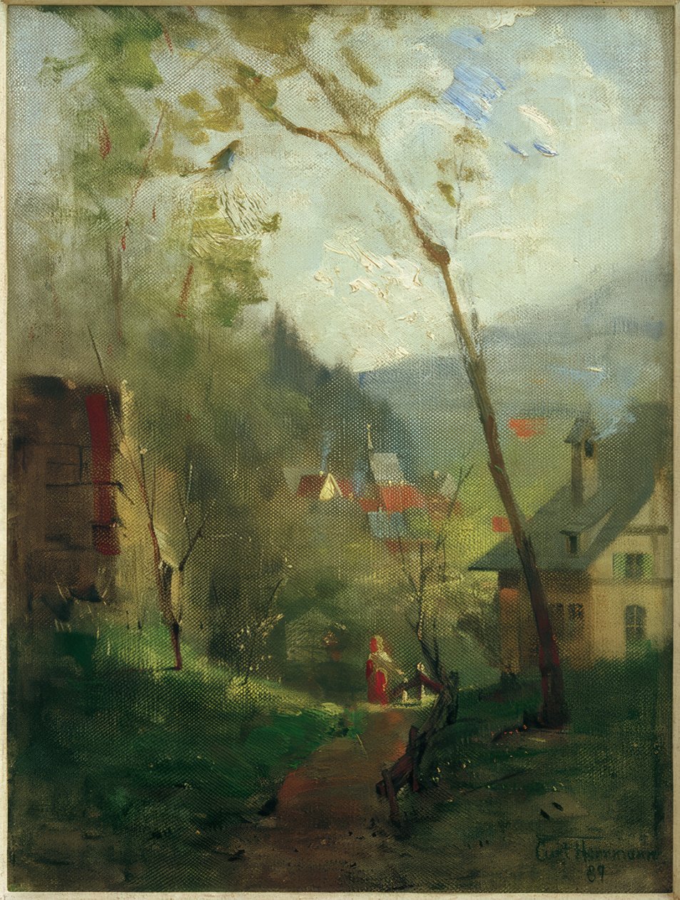 Frau in rotem Kleid vor Landschaft(Woman in Red Dress Before Landscape)Curt Herrmann |
