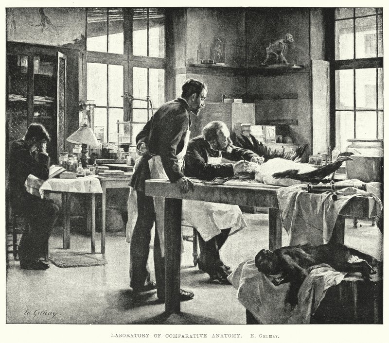 Vertailevan anatomian laboratorio (kaiverrus)(Laboratory of comparative anatomy (engraving))Edouard Gelhay |