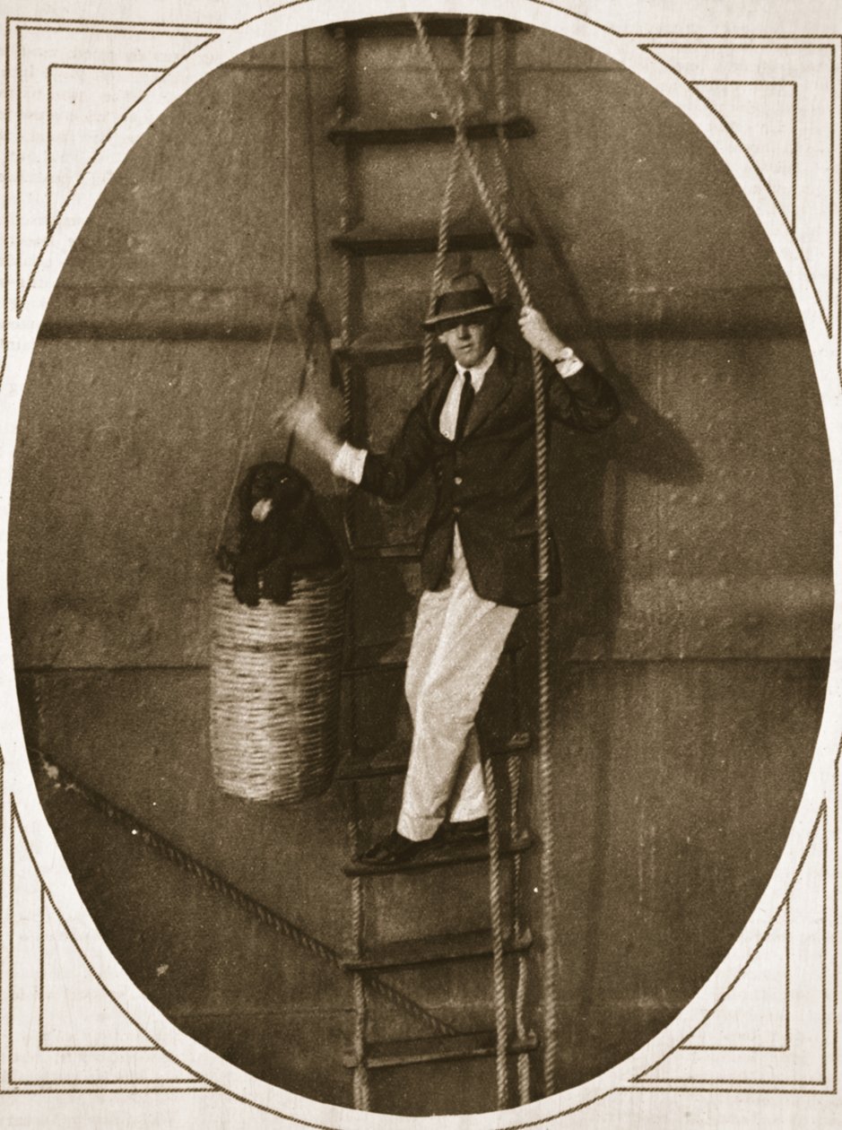 Aina valmiina maihin: koiran laskeminen veneeseen laskeutumista varten, kuvitus The Illustrated War Newsista, 6. syyskuuta 1916 (seepiakuva)(Always ready to go ashore: lowering a dog into a boat for landing, illustration from The Illustrated War News, 6th September 1916 (sepia photo))English Photographer |