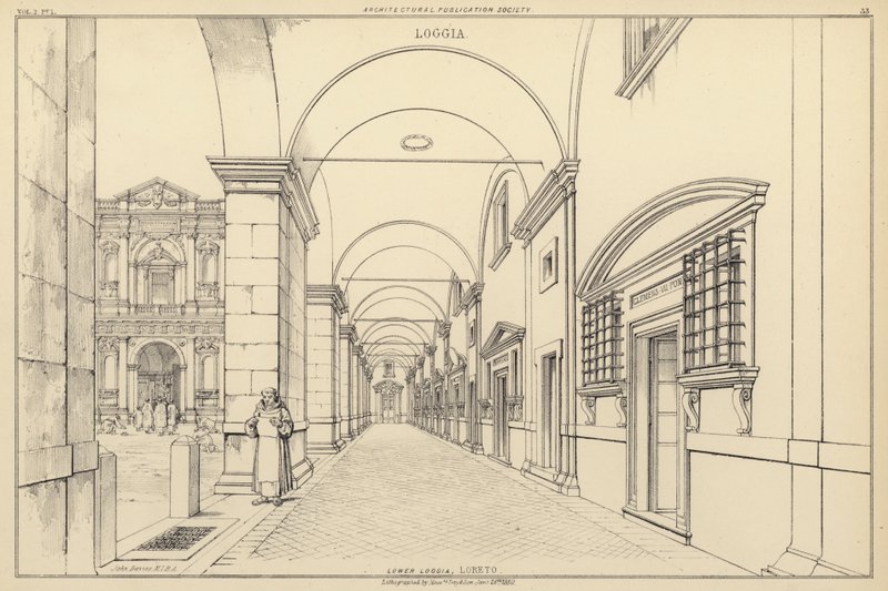 Lower Loggia, Loreto, Italia (litho)(Lower Loggia, Loreto, Italy (litho))English School |