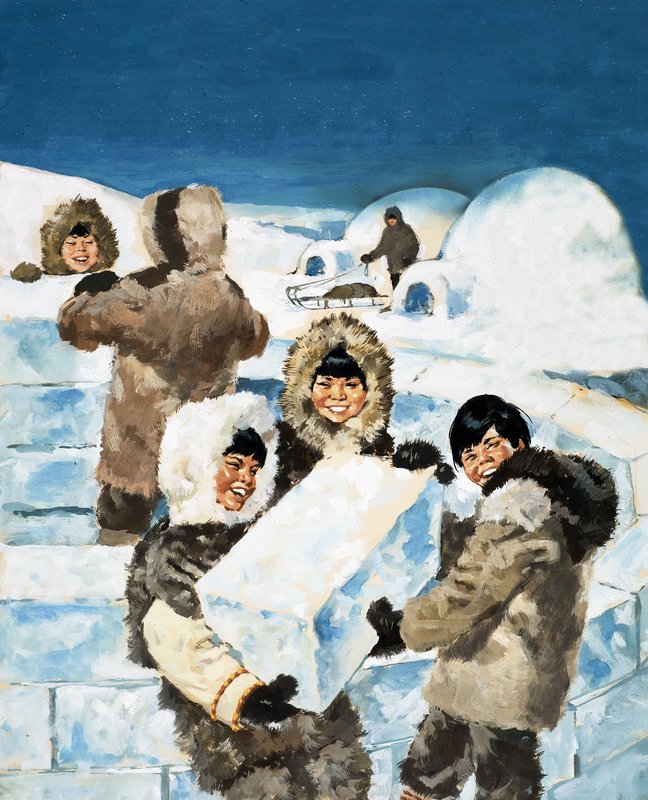 Eskimopojat rakentamassa iglua(Eskimo Boys building an igloo)English School |