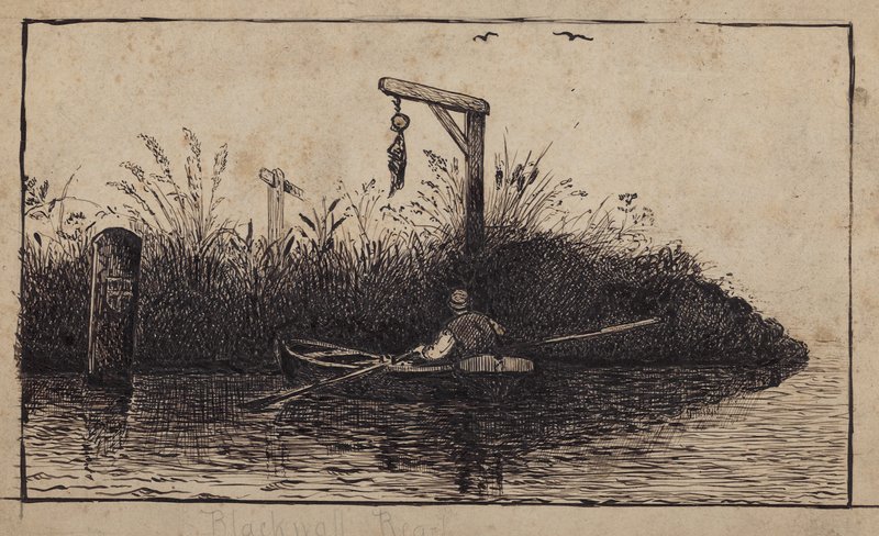 Soutuvene hirsipuun ohi(Rowing boat passing a gallows )English School |