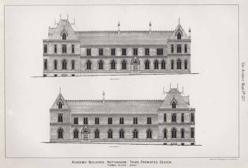 Akateemiset rakennukset, Nottingham, Third Premiated Design (kaiverrus)(Academic Buildings, Nottingham, Third Premiated Design (engraving))English School |