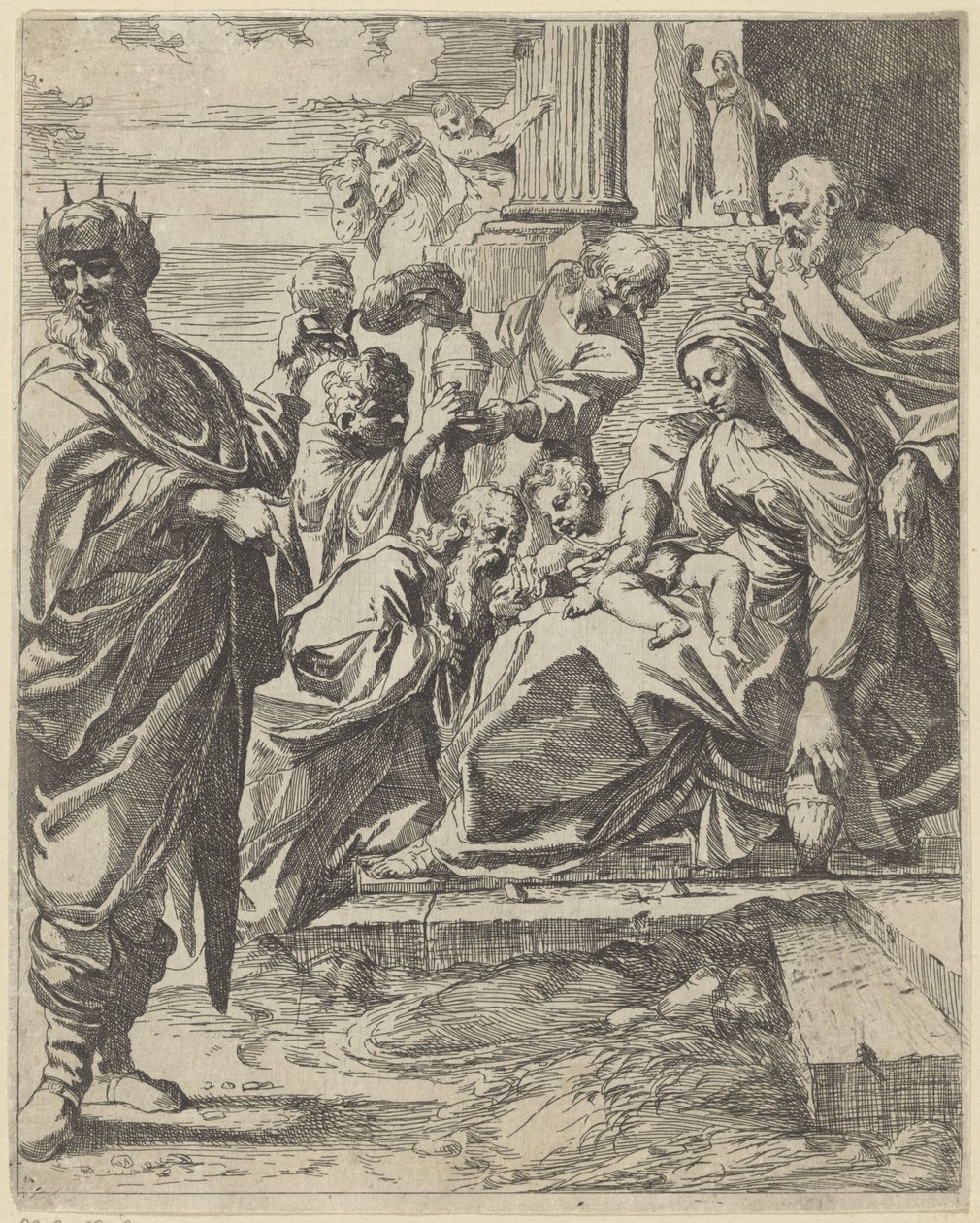 Kuninkaiden palvonta(Aanbidding door de koningen)Francesco Brizio (attributed to)(print maker),Annibale Carracci (rejected attribution)(print maker),Ludovico Carracci(after design by) |