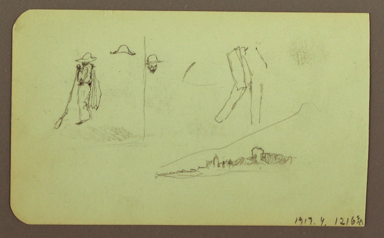 Piirustus, tehdas; Kääntöpuoli: Hahmot, 1883(Drawing, Factory; Verso: Figures, 1883)Frederic Edwin Church |