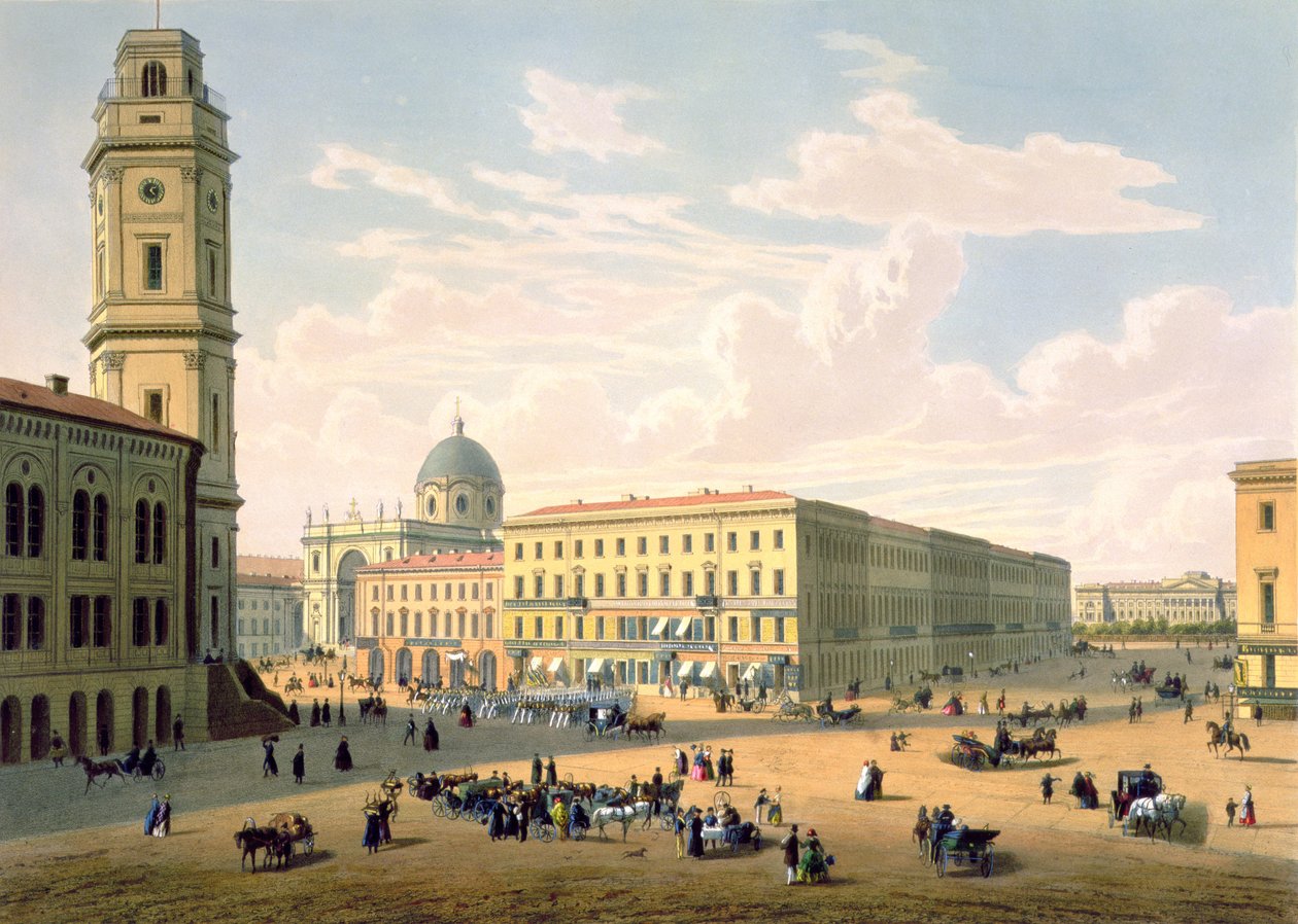 Katolinen kirkko ja Mikhailovskaya Street Pietarissa, paina J. Jacottet ja Regamey, julkaisija Lemercier, Pariisi, 1850-luku(The Catholic Church and Mikhailovskaya Street in St. Petersburg, printed by J. Jacottet and Regamey, published by Lemercier, Paris, 1850s )French School |