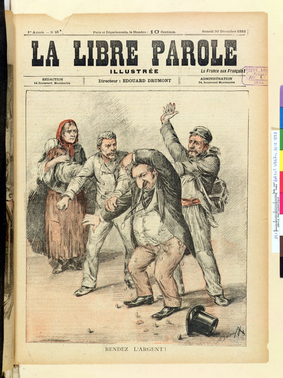 Give Back the Money!, La Libre Parole -lehden etukansi, 30. joulukuuta 1893(Give Back the Money!, front cover of La Libre Parole magazine, 30th December 1893 )French School |