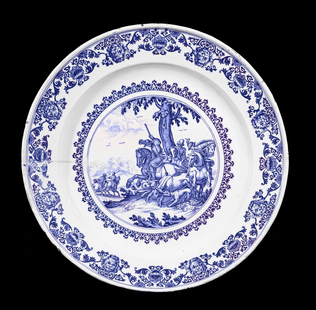 Moustiers-astia, luultavasti maalannut Gaspard Viry (1668-1720), n. 1700 (fajanssi)(Moustiers dish, probably painted by Gaspard Viry (1668-1720), c.1700 (faience))French School |