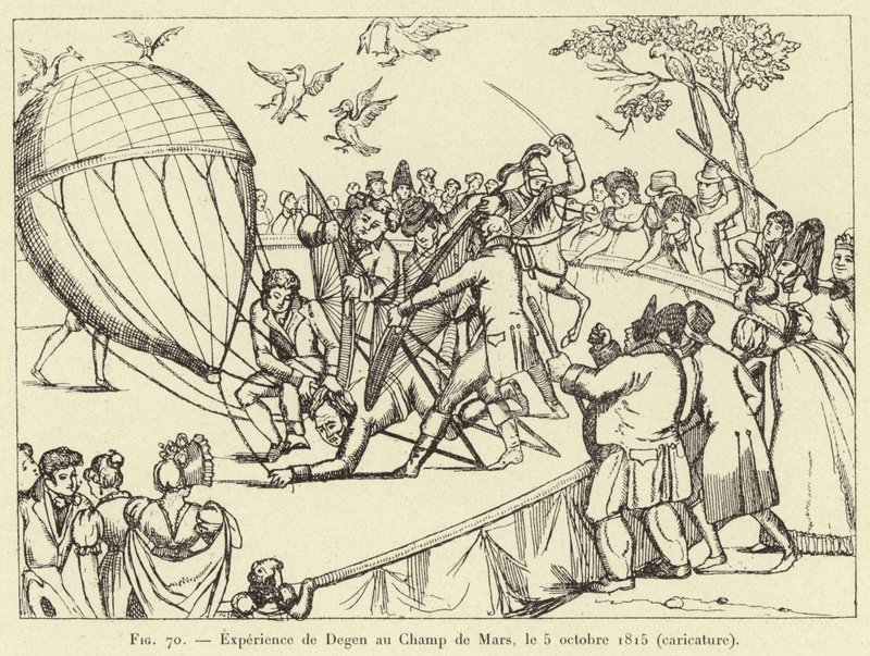 Degenin kokemus Champ de Marsilla, 5. lokakuuta 1815 (karikatyyri)(Experience de Degen au Champ de Mars, le 5 octobre 1815 (caricature) )French School |