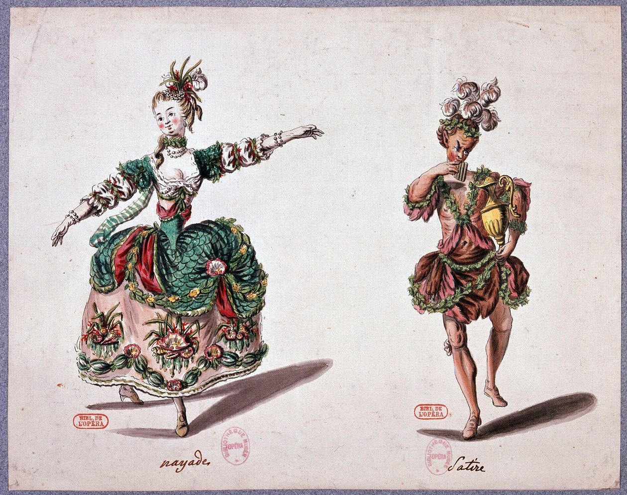 Oopperapuvut: nayade ja satyre(Opera costumes: nayade and satyre)French School |
