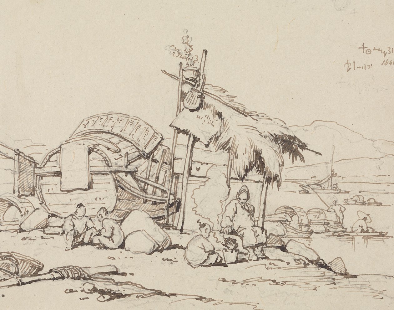Vanha mies ja lapset istuvat, ruoanlaitto(Old Man and Children Seated, Cooking)George Chinnery |