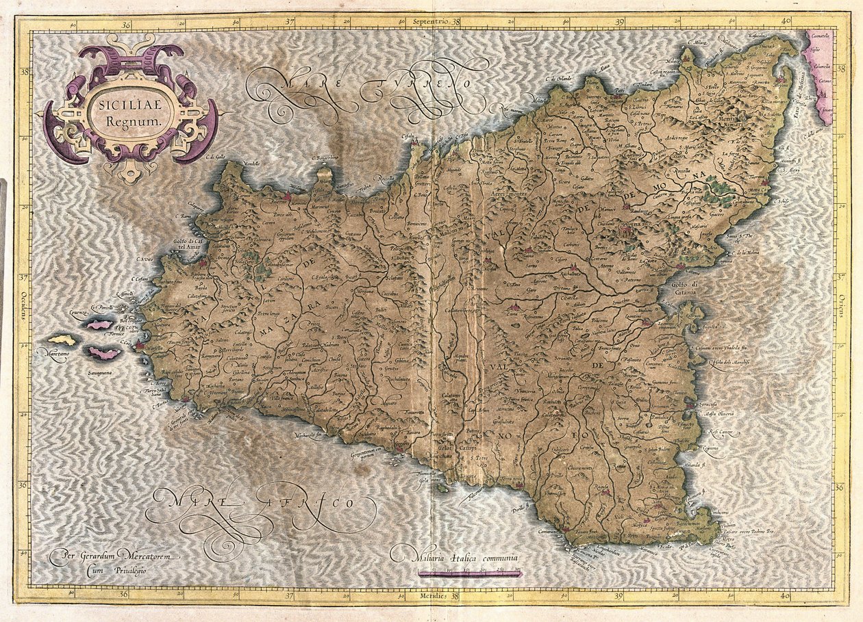 Sisilia, Italia (kaiverrus(Sicily, Italy (engraving)Gerardus Mercator |