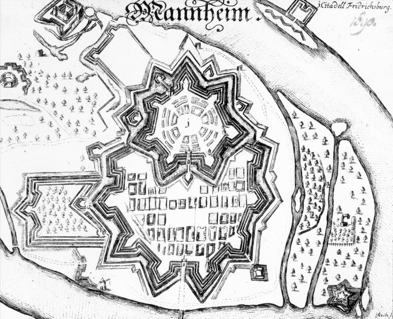 Mannheimin suunnitelma, Saksa 1690(Plan of Mannheim, Germany 1690 )German School |