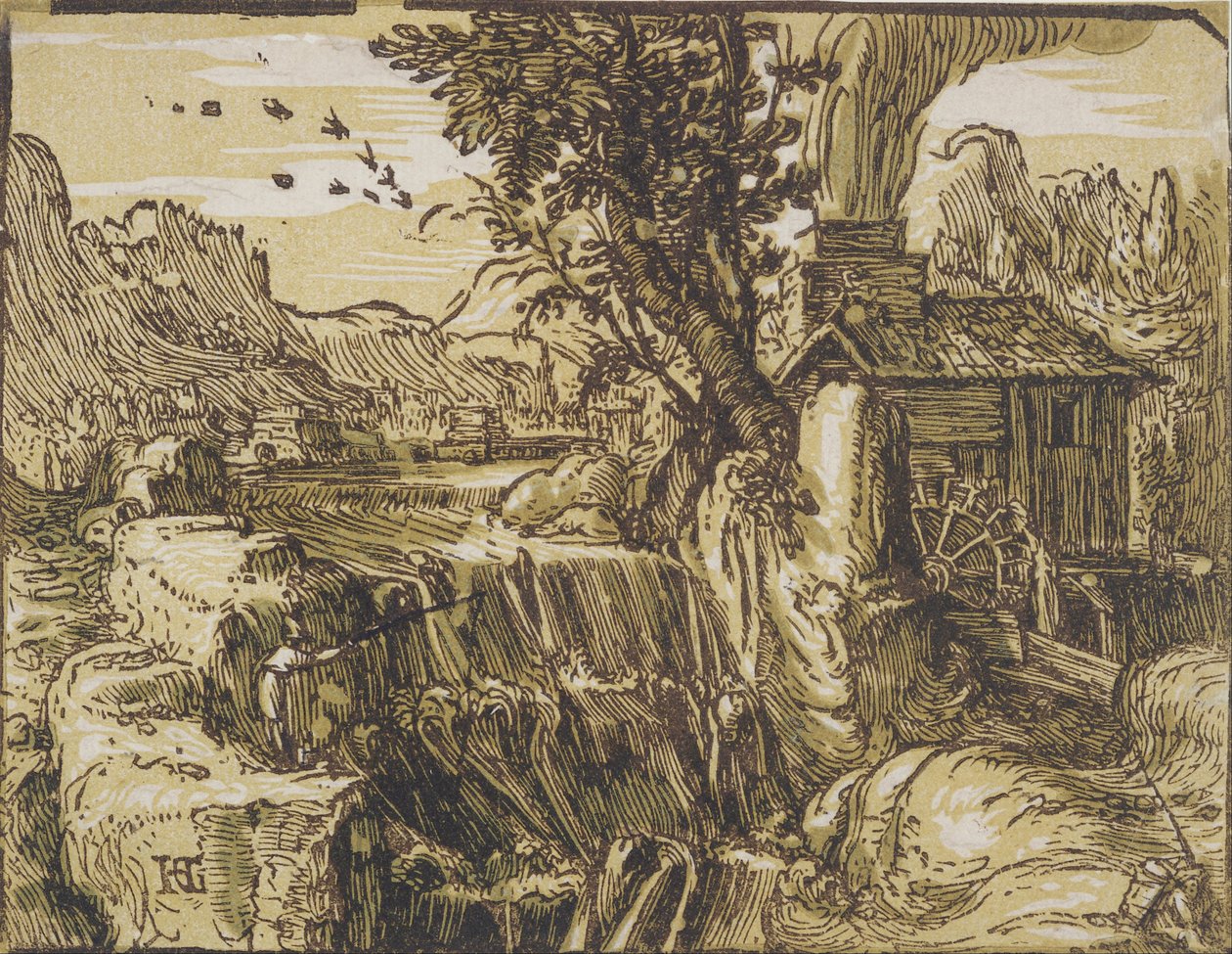 Maisema vesiputouksen kanssa(Landscape with a Waterfall)Hendrik Goltzius |