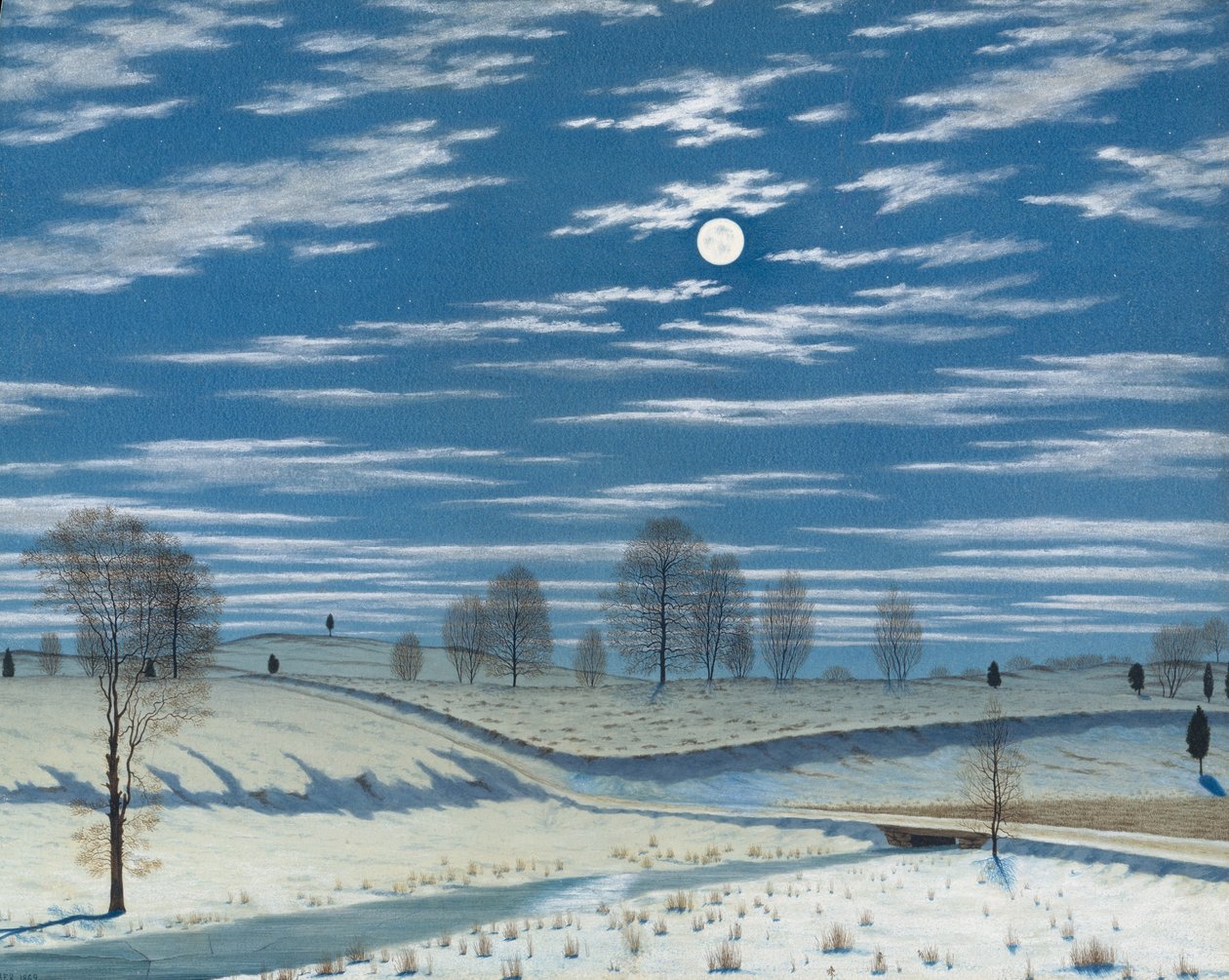 Talvikohtaus kuutamossa, 1869.(Winter Scene in Moonlight, 1869. )Henry Farrer |