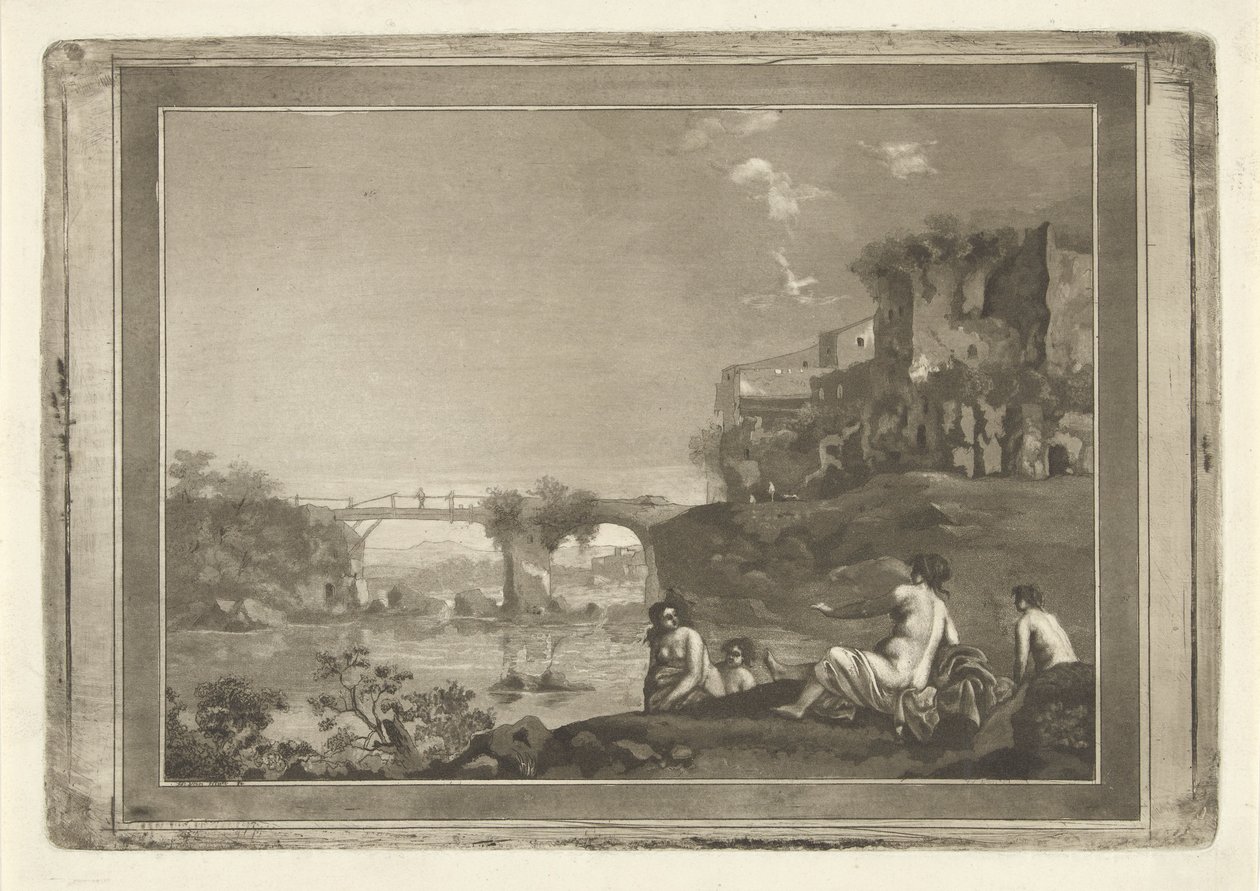 Maisema kylpevien nymfien kanssa(Landschap met badende nimfen)Hubertus van Hove(print maker) |