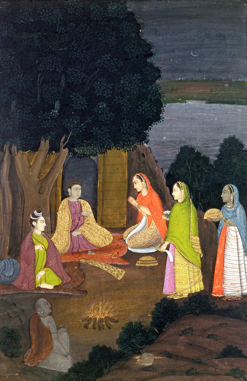 Naiset vierailemassa Yoginissa, School of Faqurullah Khan, Lucknow, Uttar Pradesh (läpinäkymätön wc paperilla)(Ladies visiting a Yogini, School of Faqurullah Khan, Lucknow, Uttar Pradesh (opaque wc on paper))Indian School |