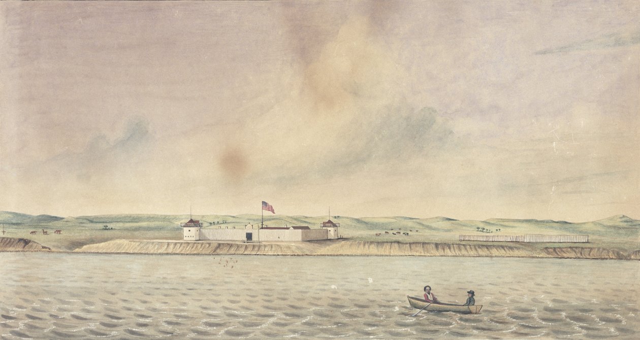 Fort Union, Missouri, 1843 (wc, muste ja grafiitti paperilla)(Fort Union, Missouri, 1843 (wc, ink and graphite on paper))Isaac Sprague |