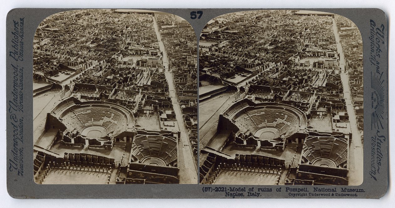Malli Pompejin raunioista, Underwood Travel Librarysta, 1895 (seepiakuva)(Model of the ruins of Pompeii, from The Underwood Travel Library, 1895 (sepia photo))Italian Photographer |