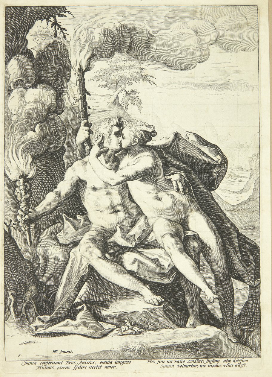 Eros ja Anteros(Eros og Anteros)Jacob Matham(attributed to),Hendrick Goltzius(after model by),Hendrick Goltzius(publisher) |