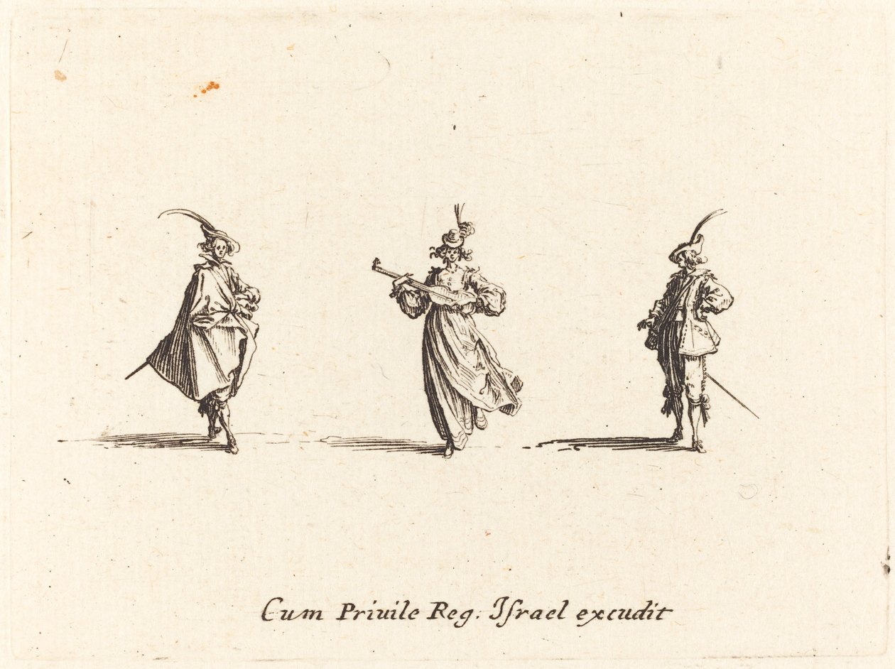 Nainen jousisoittimella ja kaksi herraa(Lady with String Instrument, and Two Gentlemen)Jacques Callot |