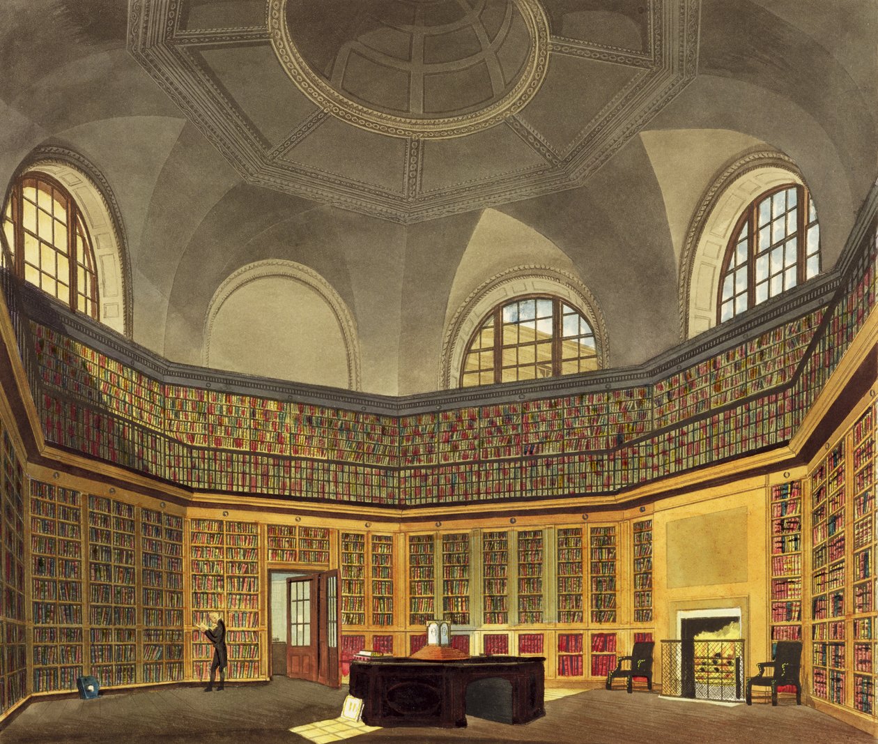 Kuninkaan kirjasto, Buckingham House, "The History of the Royal Residences", kaivertanut R.G. Reeves (fl.1811-37), kirjoittanut William Henry Pyne (1769-1843), 1819 (katso myös 169796)(The King's Library, Buckingham House, from 'The History of the Royal Residences', engraved by R.G. Reeves (fl.1811-37), by William Henry Pyne (1769-1843), 1819 (see also 169796))James Stephanoff |