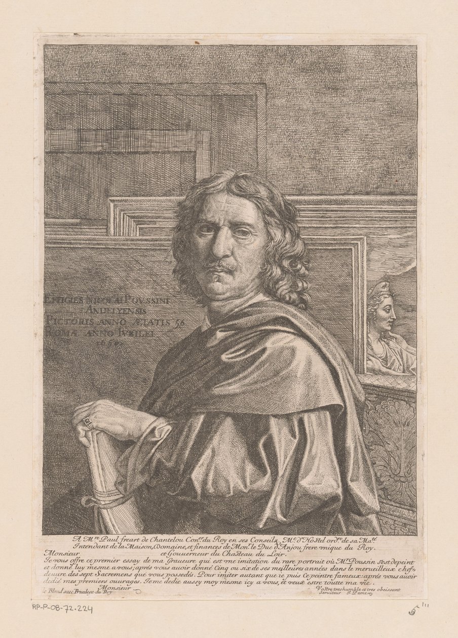 Nicolas Poussinin muotokuva(Portret van Nicolas Poussin)Jean Pesne(print maker),Nicolas Poussin(after painting by),Jean Leblond (I)(publisher) |