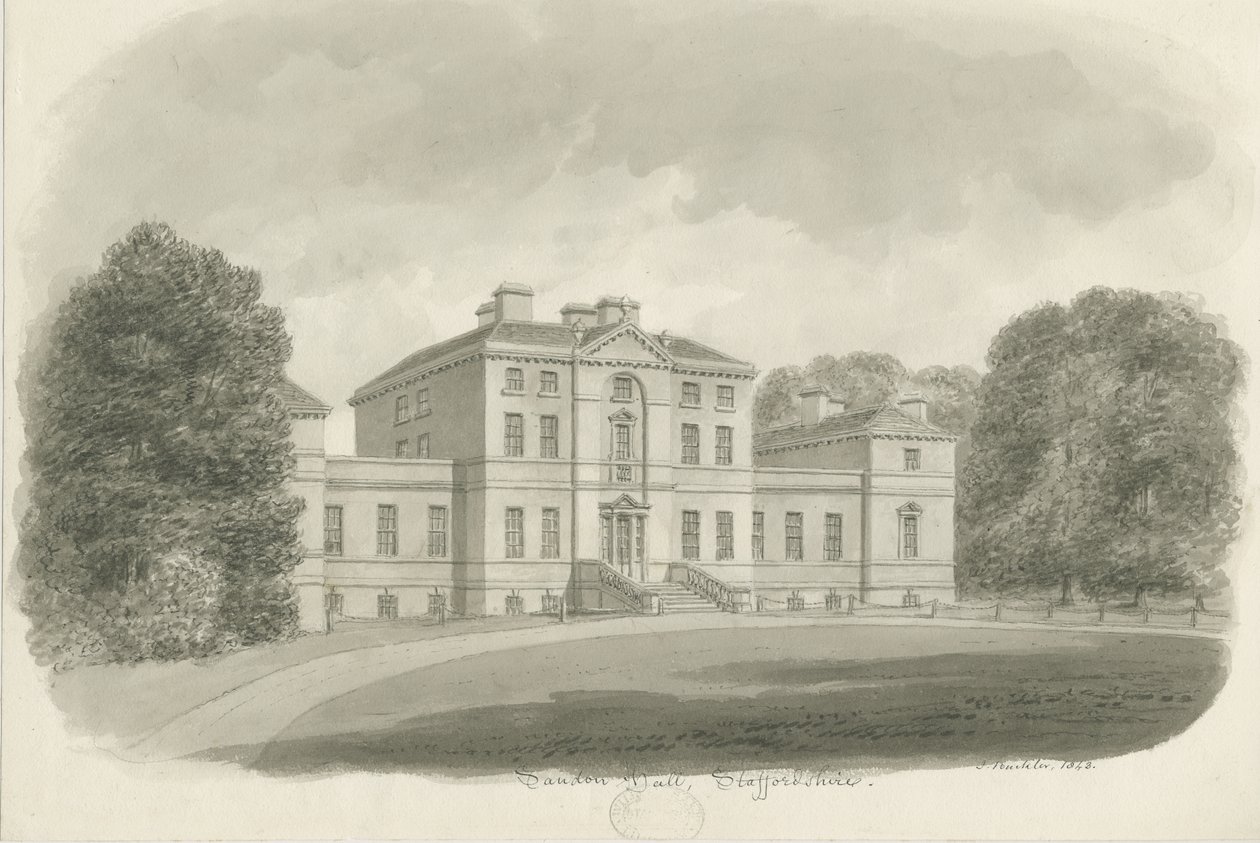 Sandon Hall: seepiapiirros (vinjetoitu)(Sandon Hall: sepia drawing (vignetted))John Buckler |