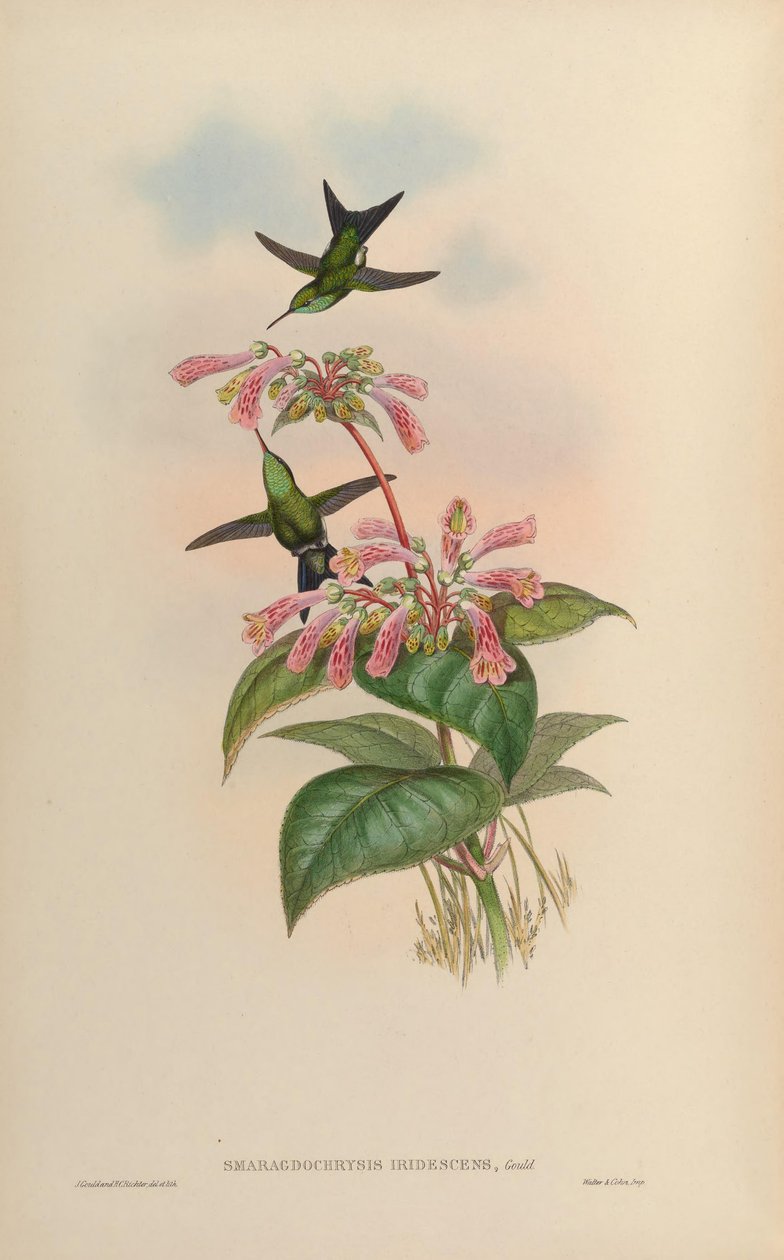 Smaragdochrysis iridescens = Chlorostilbon aureoventris X Calliphlox amethystinaJohn Gould |