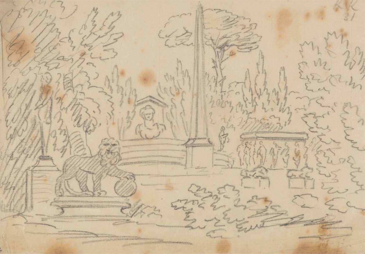 Obeliski ja patsaat puutarhassa(Obelisk and Statues in a Garden)John Robert Cozens |