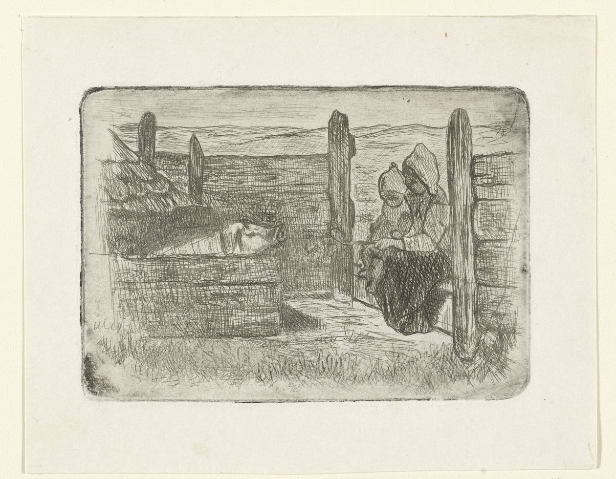 Lapset sikaloissa(Kinderen bij het varkenskot)Jozef Israëls(print maker) |