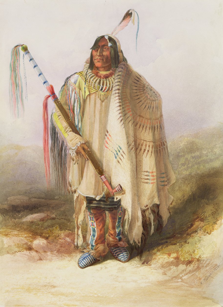 Pehriska-Ruhpa, Hidatsa-soturi(Pehriska-Ruhpa, Hidatsa warrior)Karl Bodmer |