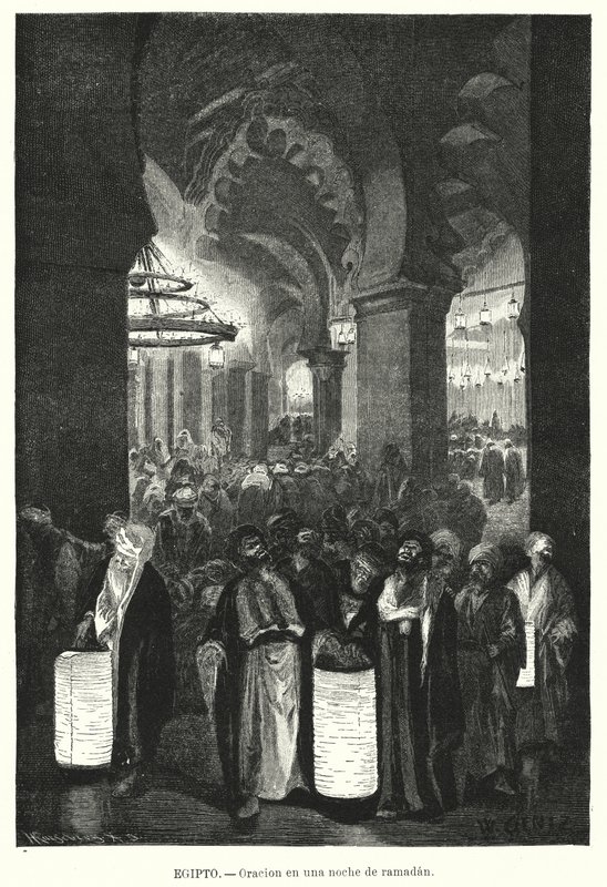 Iltarukoukset Ramadanin aikana, Egypti (litho)(Evening prayers during Ramadan, Egypt (litho))Karl Wilhelm Gentz |