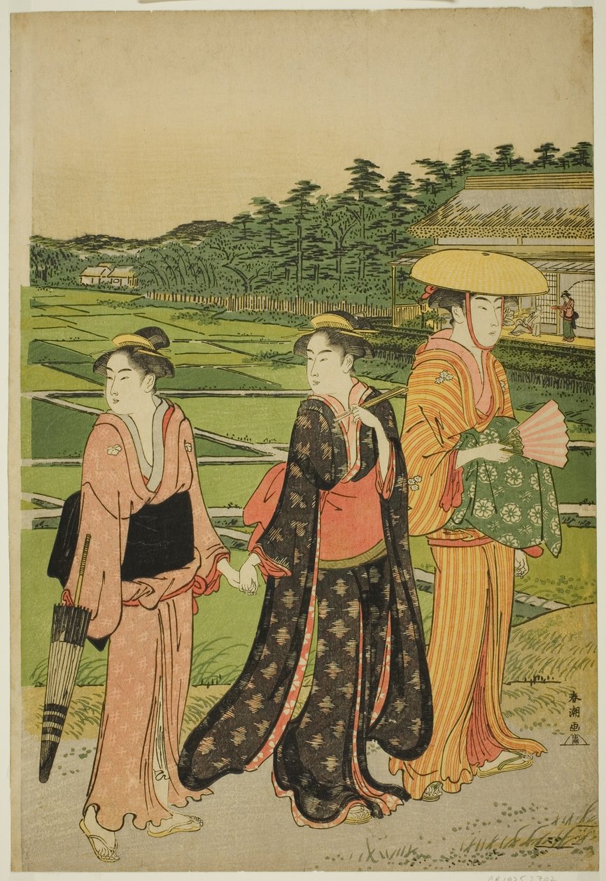 Kolme naista lähellä Rice Paddiesia(Three Women near Rice Paddies)Katsukawa Shuncho |