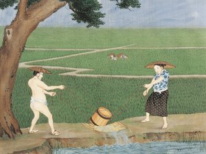 Deshiman saari Nagasakin lahdella laivoineen Vasco da Gama ja Johanna..., noin 1825.(The island of Deshima in the bay of Nagasaki with the ships Vasco da Gama and Johanna..., ca 1825. )Keiga Kawahara |