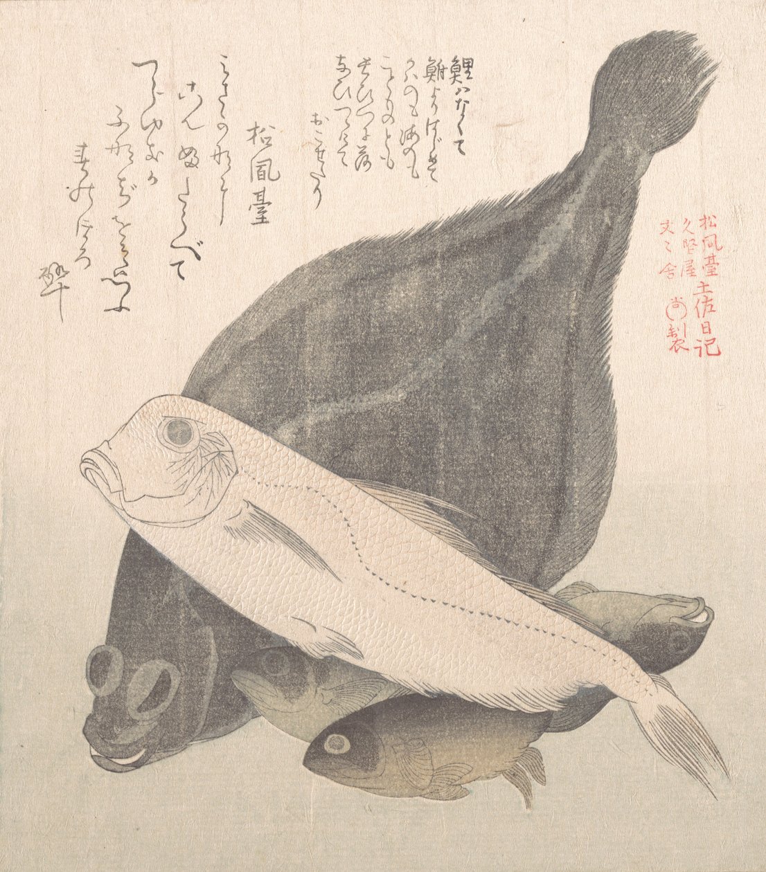 Kampela ja muut kalat, 1800-luku.(Flounder and Other Fishes, 19th century. )Kubo Shunman |