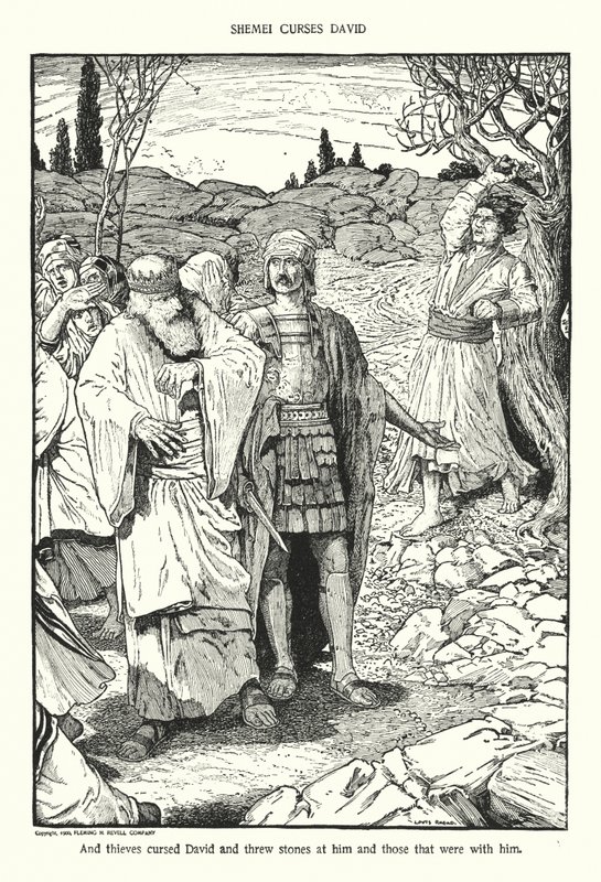 Shimei kiroaa Daavidin (litografia)(Shimei curses David (litho))Louis John Rhead |