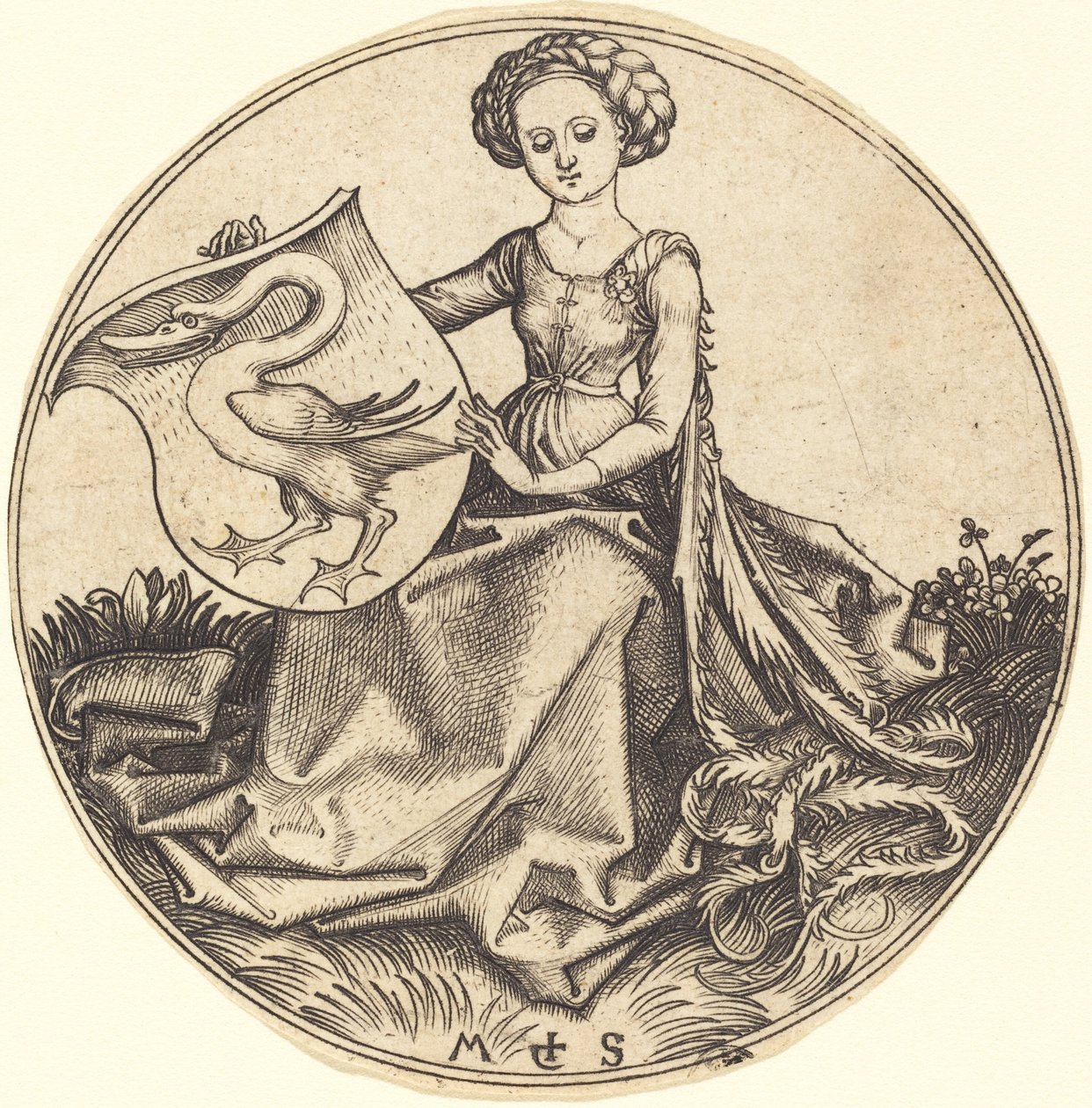 Kilpi Joutsenen kanssa, Naisen hallussa(Shield with Swan, Held by Woman)Martin Schongauer |