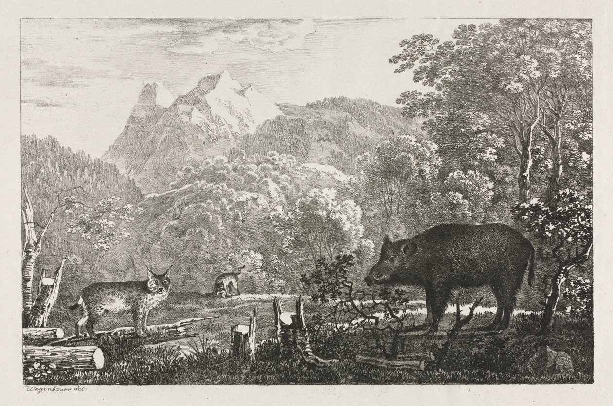 Villisika, villikissa ja ilves, 1807.(Wild Boar, Wildcat and Lynx, 1807. )Maximilian Josef Wagenbauer |