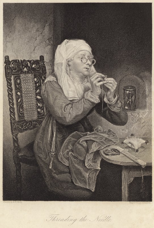 Neulan langoitus (kaiverrus)(Threading the Needle (engraving))Michael William (after) Sharp |